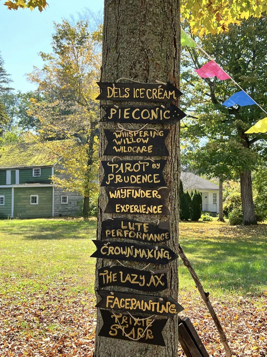 On Sunday, October 1, 2023 we hosted our second annual Renaissance Faire. Programs included Axe throwing by The Lazy Axe, a classical lute performance by Andrew Rutherford, birds of prey demonstrations by Whispering Willow Wild Care, tarot readings by Prudence, and sword fight demonstrations from The Wayfinder Experience, as well as face painting, crafts for kids and a costume contest. Del’s Roadside Creamery, Pieconic, and Trixie Starr offered treats for sale.