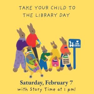 Today is the day! Bring your kiddo to the library for a special Family Story Time at 1 pm with craft to celebrate Take Your Child to the Library Day! We will have special stickers and bookmarks to hand out as well.