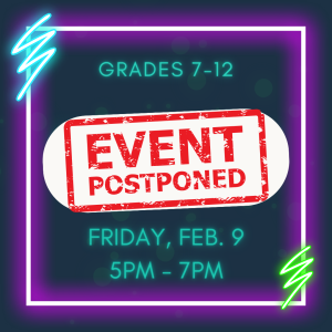 **Postponed until Friday, 2/9! Open to Grades 7-12 It's Bingo, but in the dark! Wear your best black light attire (white and neon!) and test your luck at the return of Teen Bingo Night!